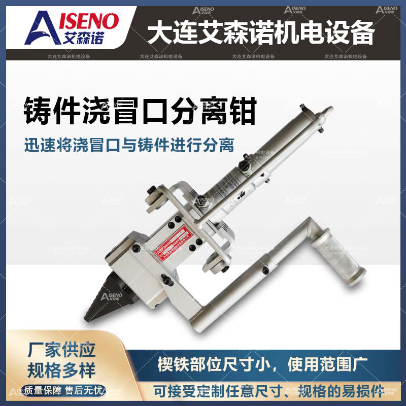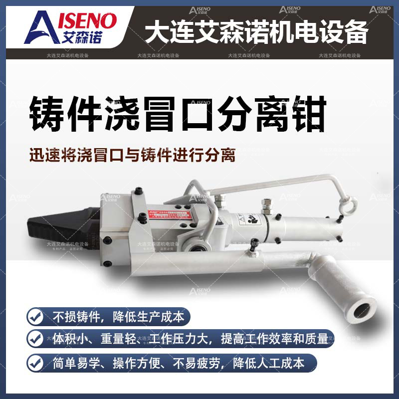 鑄件澆冒口分離工具,在不損傷制品的情況下將鑄件澆冒口、澆道等多余部分分離,便于回爐再利用。其具有體積小,重量輕、工作壓力大、破壞力強等優(yōu)點。世界著名汽車、機械制造廠家都在使用艾森諾產品。艾森諾產品機型種類豐富,大致分為:澆冒口分離器、澆冒口氣動沖擊錘,擊斷器及液壓泵站等,產品適用范圍廣,用戶可以根據(jù)鑄件的材質、形狀、大小來選擇適合自己產品的分離工具。